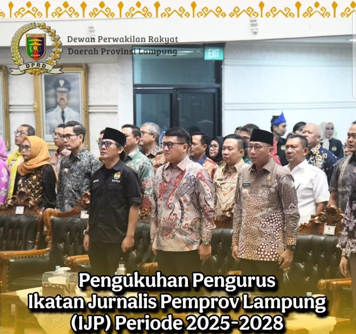 Bandar Lampung.IR – Ketua DPRD Provinsi Lampung Bapak Ahmad Giri Akbar S.E., M.B.A., dan ketua Komisi IV Bapak Drs. Mukhlis Basri, M.Si. menghadiri Acara Pengukuhan Pengurus Ikatan Jurnalis Pemprov Lampung (IJP) Periode 2025-2028. Bertempat di Balai Keratun Lantai III Pemprov Lampung. Kamis (19/06).(Mp)